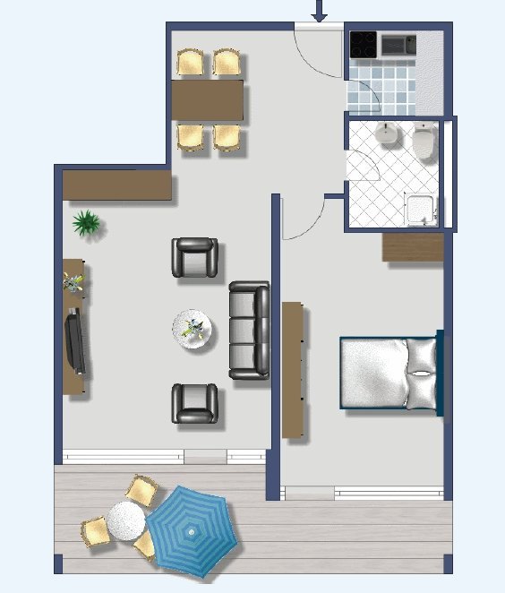 Our apartment within Haus Roc is a little gem that is suitable for 2 people and is available for weekly hire throughout the year. (Scroll down for floor plan)